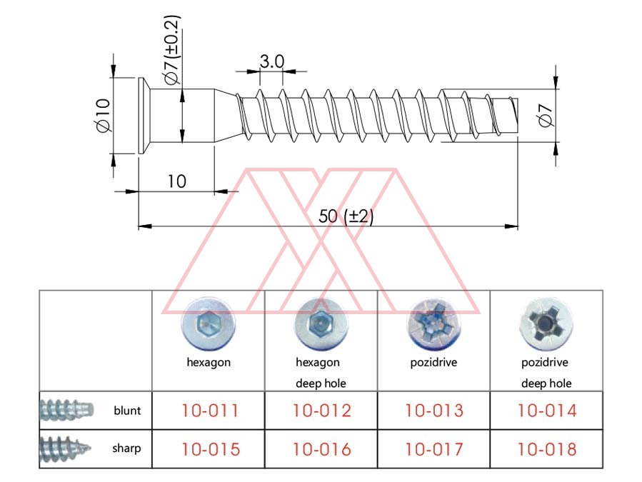 MXXJ-001-63-50-PS50mm, pozi/sharp Details: pozi/sharp Length (L): 50